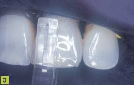 - Modellation: Das Komposit wird mithilfe einer Formmatrize oder frei aufgetragen und anschließend mit UV-Licht schichtweise ausgehärtet.