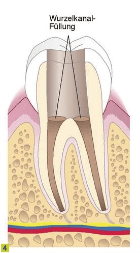 - Der Zahn wird nach erfolgreicher Wurzelfüllung bakteriendicht verschlossen. Eine Restaurierung mit einer künstlichen Zahnkrone kann wegen der Frakturgefahr nötig sein.