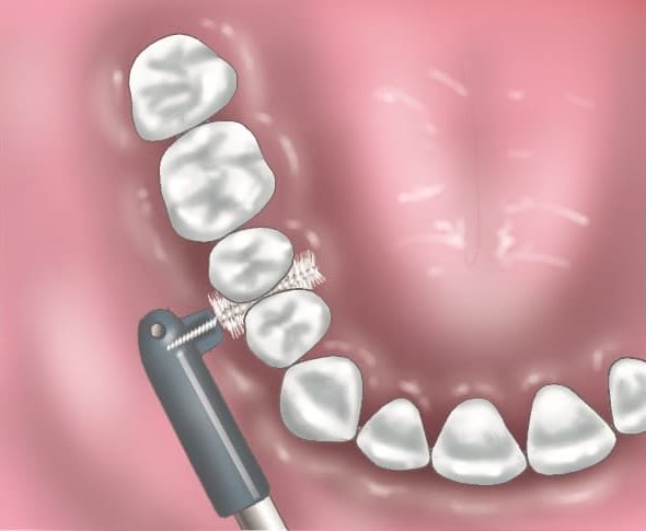 - Reinigung der Zahnzwischenräume mit einem Interdentalbürstchen