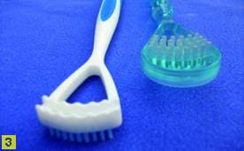 - Kombinierte Zungenreiniger erleichtern eine individuelle Anwendung. Zuerst wird der Schaber, danach die Borstenseite genutzt.
