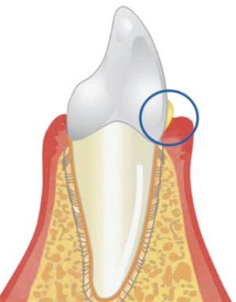 - Die plaquebedingte Entzündung beschränkt sich auf die marginalen und papillären Bereiche der Gingiva.