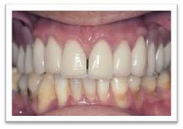 Diese Versorgungsart eignet sich besonders, wenn neben dem Ersatz von Seitenzähnen auch Frontzähne überkront werden müssen. Die Kronen werden wie „normale“ Kronen keramisch verblendet und bieten daher eine sehr gute Ästhetik.